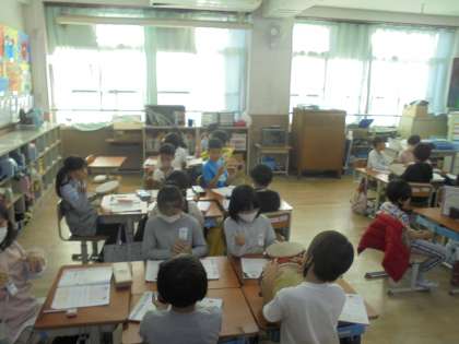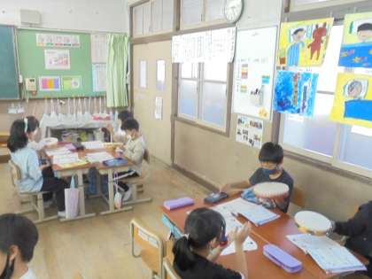 グループで、楽器をそれぞれ使って、演奏しました。グループで話し合いながら進めることができていました。
