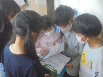 準備物や役割の確認なども6年生の大事な仕事です。無事に成功させられるように,下級生に積極的に声をかけていました。