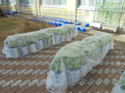 間引きシアタ後、葉がますます大きくなっています。大きな葉をつけ、立派な大根に成長してほしいです。