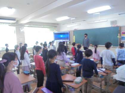 学習発表会に向けて、教室で分かれて、練習をしています。