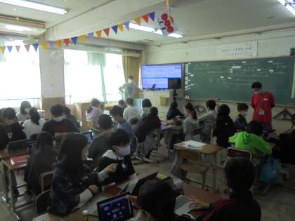 ロイロノートを使い、グループでそれぞれの考えを出し合い、話し合いながら学習をしています。