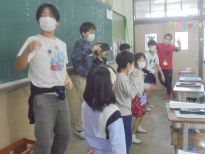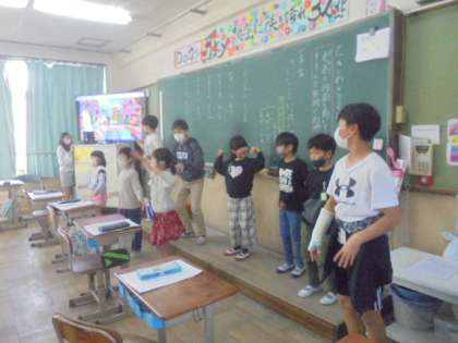また,作文発表の終わった後に,1年生が体育参観で踊ったダンスをみんなで踊っている教室もありました。フレンズ活動を重ねていく度に,グループの仲は確実に深まっているなと感じる,とても微笑ましい光景でした。