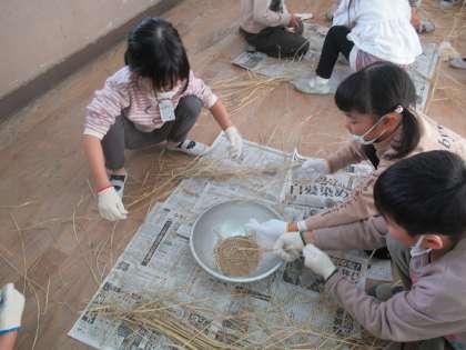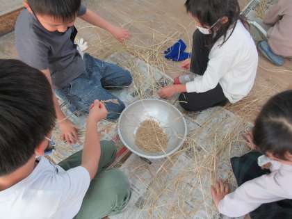 2年生生活科「もみ殻を取ろう」