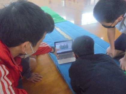 それぞれのねらいに合わせて練習の場を工夫して取り組んでいます。また,動きを動画で撮影し,友だちと改善点を話し合う姿も見られました。