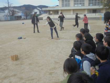 京都モルックの会の方々に来ていただき,モルックの体験をさせていただきました。モルックとは,フィンランド発祥の競技です。