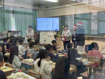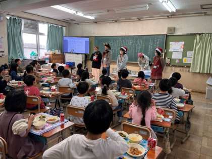 今年も給食時間に教室に来ていただき、これまでに作っていただいた本のしおりをプレゼントしていただきました。とってもかわいらしいしおりを子どもたちは喜んでいました。