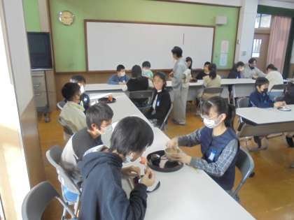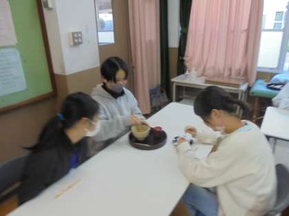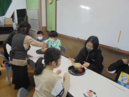 3人で、お茶をたてる役、運び役、お客さん役を行い、役割を交代しながら体験をしました。