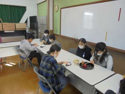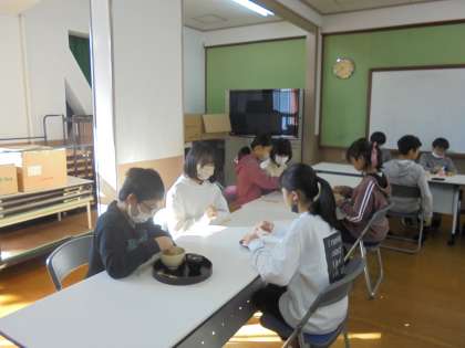 本日も6年生の1クラスの茶道体験教室を行いました。抹茶をいただくときの作法などを学びました。