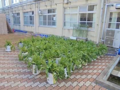 大根が少しずつ太くなってきています。まだまだ、太い大根とはいきませんが、土から出てきているところが太く大きくなっています。