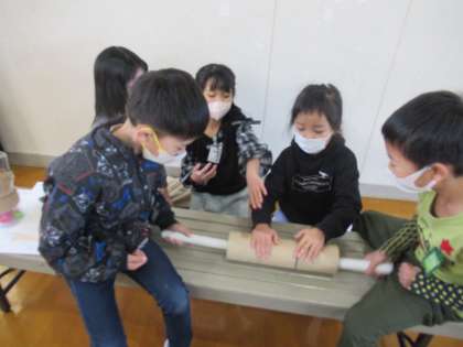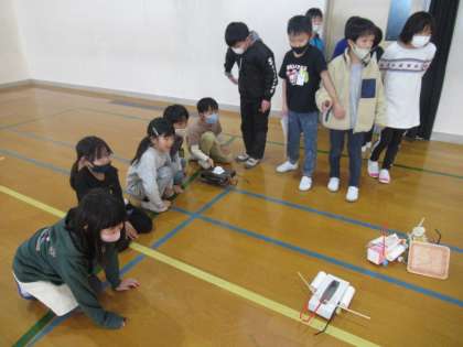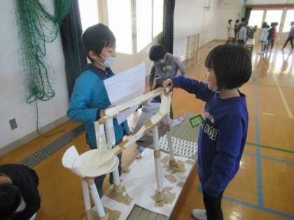 自分の作ったおもちゃを他の人たちにも遊んでもらおうということで、学習の最後に1年生を招待しました。
