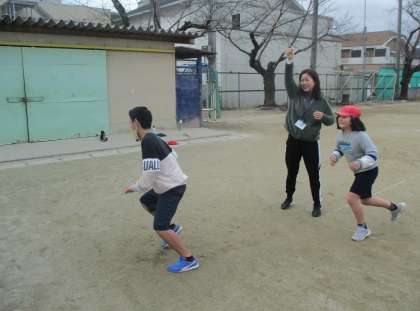 体育では、なわとび大会に向けて練習をしています。何度も跳ぶうちに、入るタイミングが合い、上手に跳べるようになりました。