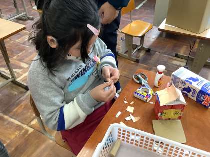 校内作品展に向けて、「ぼく・わたしのおうち」を制作しています。それぞれのアイデアで、楽しい作品ができています。