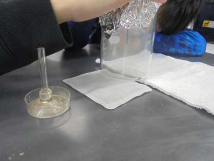 2つの実験器具で行いました。最新の実験器具では、煙の動きがよく見えました。