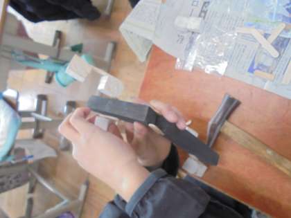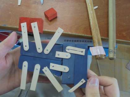 くぎを打って、木をつなぎ合わせました。細かく木を切ったのを丁寧にくぎでつなぎ合わせていました。