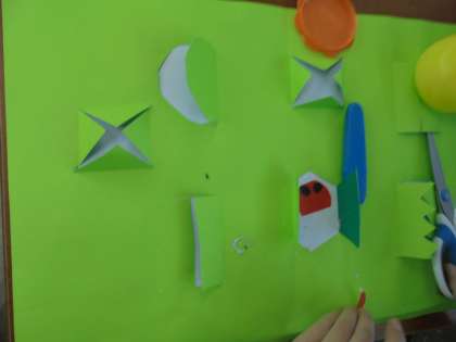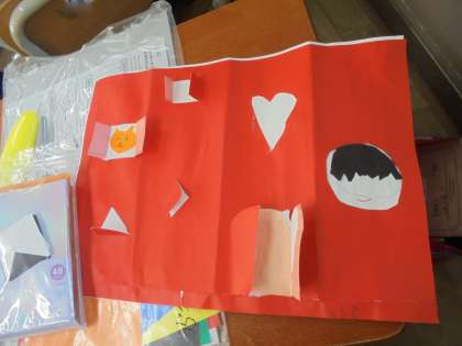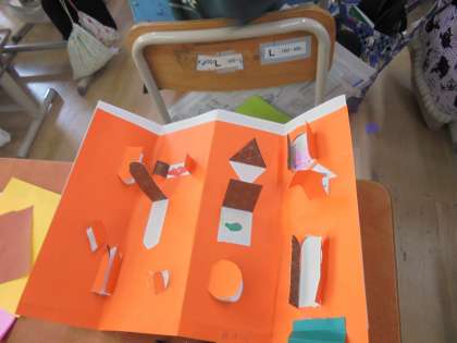 窓の枠をそれぞれ考えて、子どもたちは作品作りをしています。