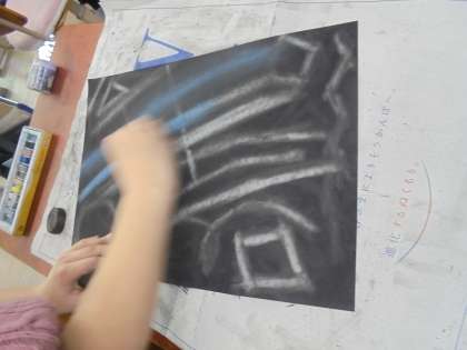 下地を作った後、いよいよ消して描く活動に入りました。