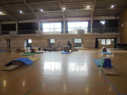 自分たちのめあてにそった練習の場づくりをして、とび箱の学習をしています。