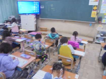 漢字ドリルに、ていねいに書き込んで学習をしていました。