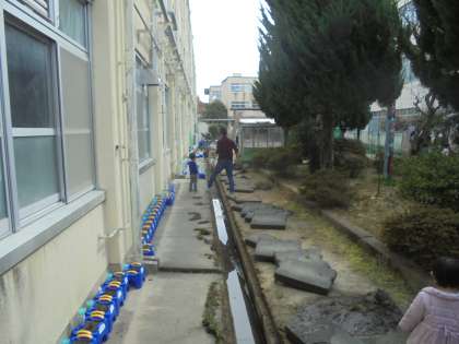 中庭の溝蓋をあげて、とてもきれいにしていただきました。