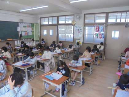 学年のまとめテストに取り組みました。集中して頑張っていました。