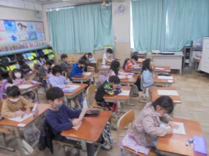 1年生での生活の振り返りをし、2年生に向けて頑張たいことを書きました。