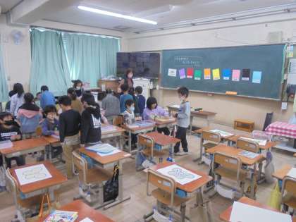 自分の欲しい色を尋ねたり、応えたりしながら、英語表現に慣れ親しみました。