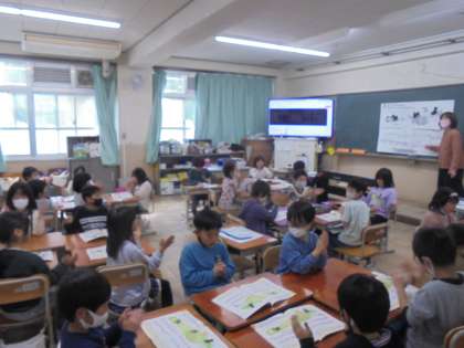 リズム打ちをしました。タン、ウン、タン、タン・・・と、楽譜を見ながら、手でリズムをたたくことができました。