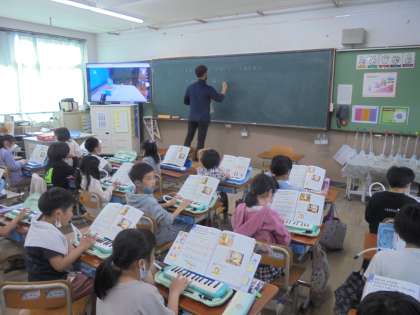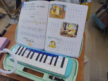 鍵盤ハーモニカで、演奏をしました。楽譜を見ながら、演奏をしました。