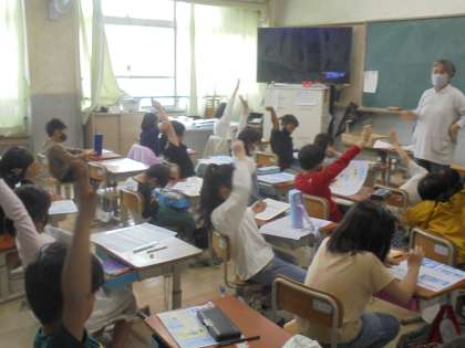 ものの重さのテストを行いました。学習したことをもとにしっかりと回答していました。