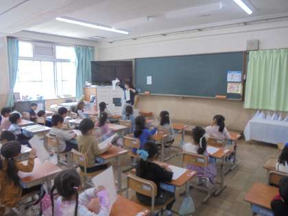 週末に子どもたちに渡す予定表について、子どもたちはしっかりと説明を聞いていました。