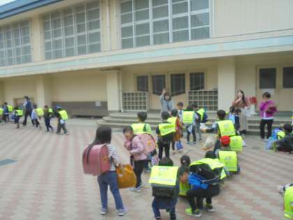 グループでかたまって帰っています。1年生の子どもたちもずいぶんと慣れてきました。