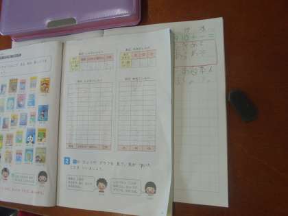 本の種類の数調べをしました。表にして整理をしました。