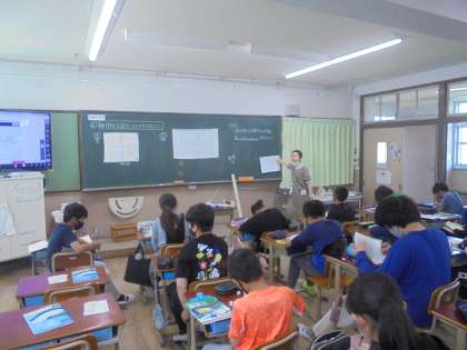 方眼紙のマス目を使い、線対称の性質から線対称となる図形をかきました。