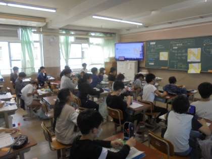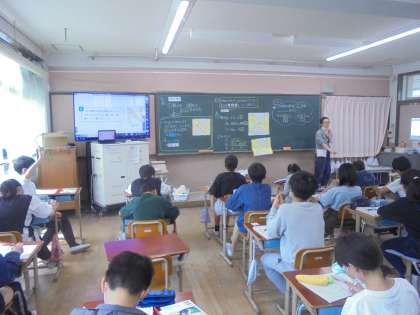 点対称な図形について学習しました。点対称の性質を見つけることができました。