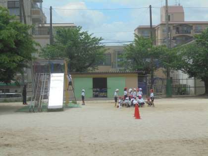 これまでに鉄棒の学習をしてきました。今日は、総合遊具での遊び方について両手で握ったりすることを確認しました。、