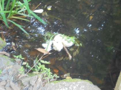 今年もモリアオガエルのたまごがありました。いつも木の上につけているたまごが、一つは、池に落ちてしまっていました。もう一つは、草むらのところにたまごを見つけました。大きく育ってほしいと思います。