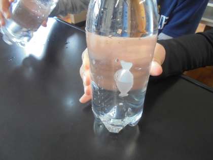 浮沈子の水の調整の後は、ペットボトルに水を入れました。ペットボトルを握ると、浮沈子が沈んでいきました。