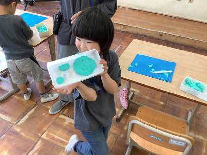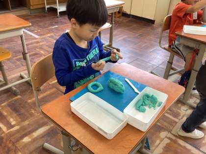 油ねんどを使って,自分が好きな食べ物や動物を作りました。