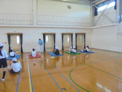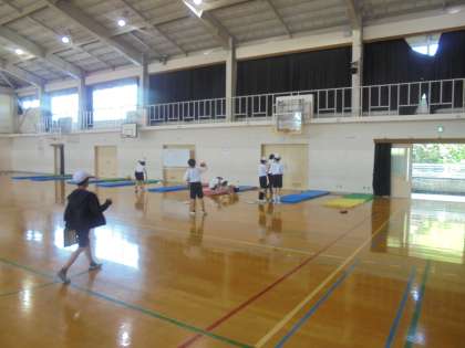 体育館で、立ち幅跳びや反復横跳びなどの新体力テストを行いました。