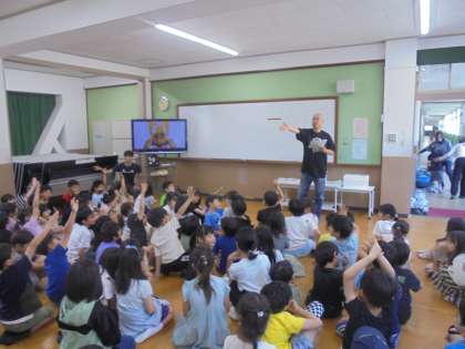 地域の方から100匹ほどのカブトムシの幼虫をいただきました。今日は、その幼虫を各クラスで育てるために、カブトムシに詳しいゲストティーチャーに来ていただきました。