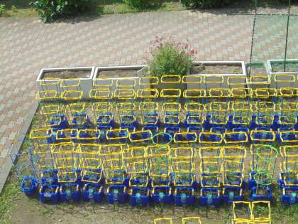 一人ずつ自分の鉢にトマトの苗を植えています。どのように成長するのか楽しみです。