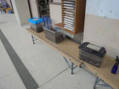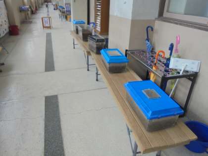 カブトムシの幼虫を教室の前で世話をしています。さなぎになって、成虫として出てくるのが楽しみです。