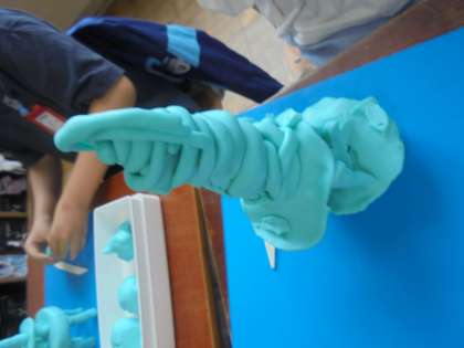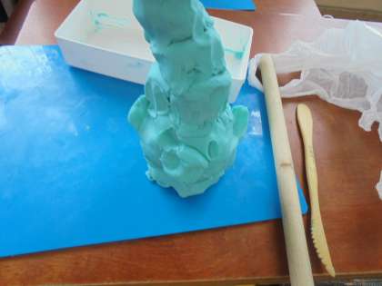 細くした粘土を重ねたり、土台をしっかりとしたりしながら作っていました。