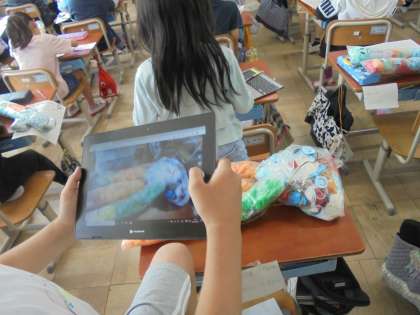 作った作品を写真で撮り、ロイロノートで作品を鑑賞しています。