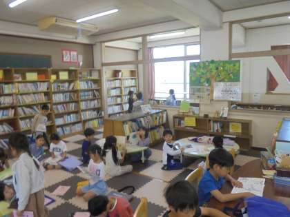 学校図書館で、自分が楽しめるような本を選んでいました。静かに学校図書館で、読書をすることができました。