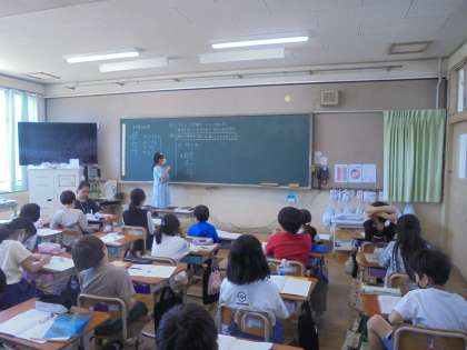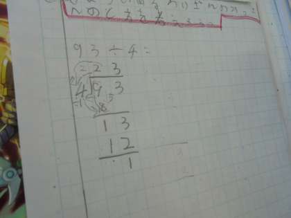 あまりのあるわり算の筆算の仕方を考えて交流しました。自分の考えや計算の仕方を言葉や矢印などを使って、ノートに書くことができました。