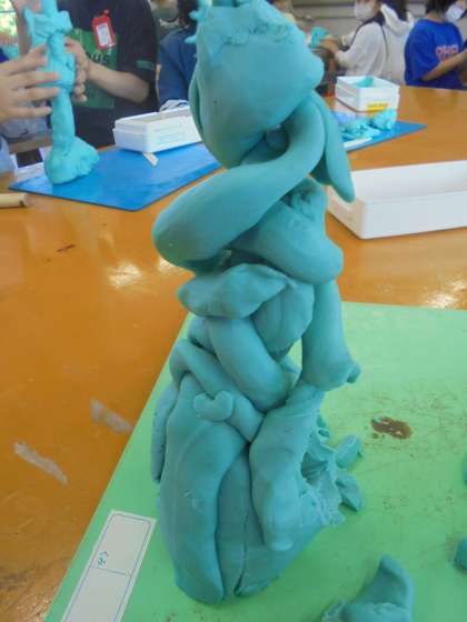 油粘土を使い、それぞれ粘土を細く伸ばしたり、つけたしたりしながら創作しました。