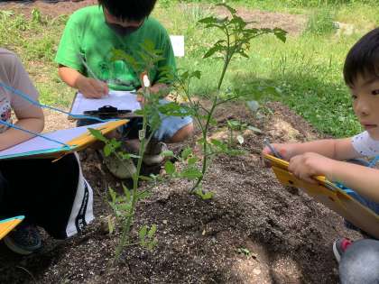 畑に植えた野菜が大きくなってきた様子を観察しました。