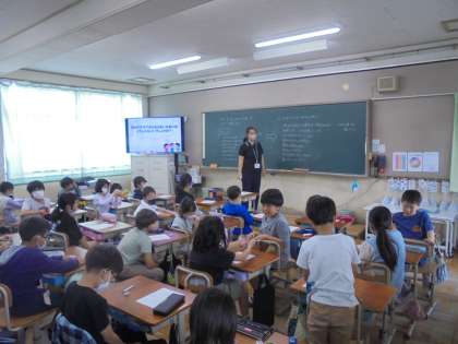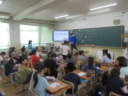 4年生では、スマートフォンとのつき合い方について学習しました。スマートフォンで便利なこととともに、危険性があることについて学習しました。