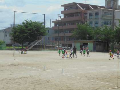 活動を進めていく中で、子どもたちは声のかけ合いやパスをもらう場所を考えて活動できるようになっています。